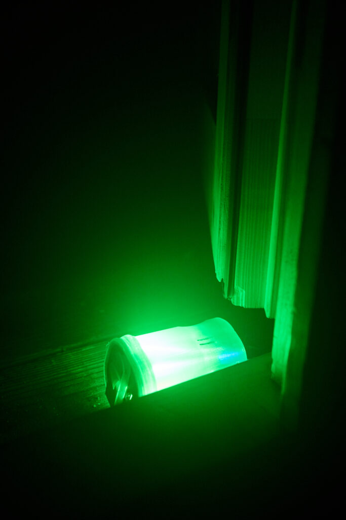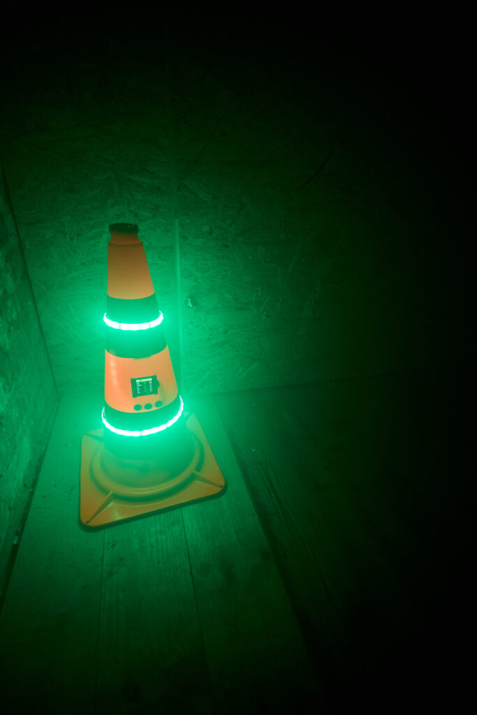 - Gasdetektor integriert in eine smarte Pylone Ebenfalls beeindruckend ist der mit KI betriebene Gasdetektor, der in einer Pylone verbaut wurde. Dieses System analysiert die Umgebungsluft kontinuierlich und zeigt den Zustand über ein integriertes LED-System an. Die LEDs signalisieren dabei schnell und klar, ob die Luftqualität in Ordnung ist oder ob potenziell gefährliche Gaskonzentrationen vorliegen.