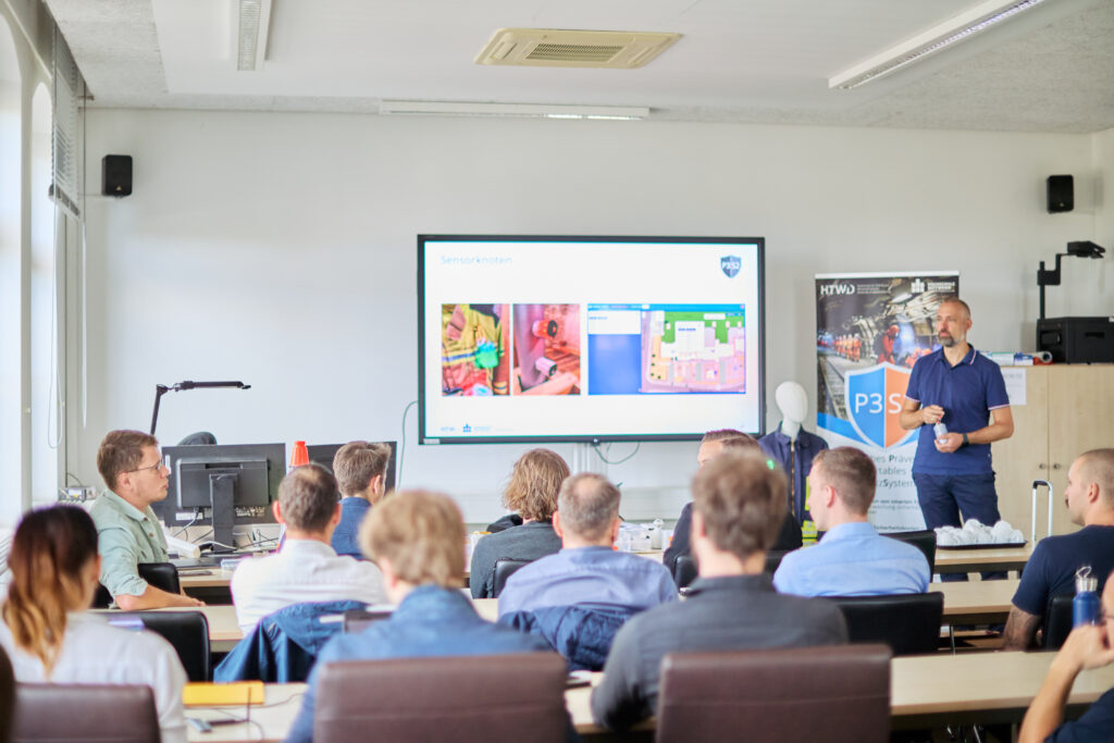 Am Vormittag präsentierten die beteiligten Hochschulen ihre Entwicklungen in einer interaktiven Runde. Im Fokus standen die verschiedenen Demonstratoren, die im Rahmen des Projekts P3S2 entstanden sind und anschaulich vorgestellt wurden. Die positiven Rückmeldungen der Gastgeber bekräftigten die Relevanz der Forschungsarbeit: Neben großem Interesse wurden auch wertvolle Hinweise für mögliche Anwendungen und Verbesserungen in industriellen Szenarien gegeben.
